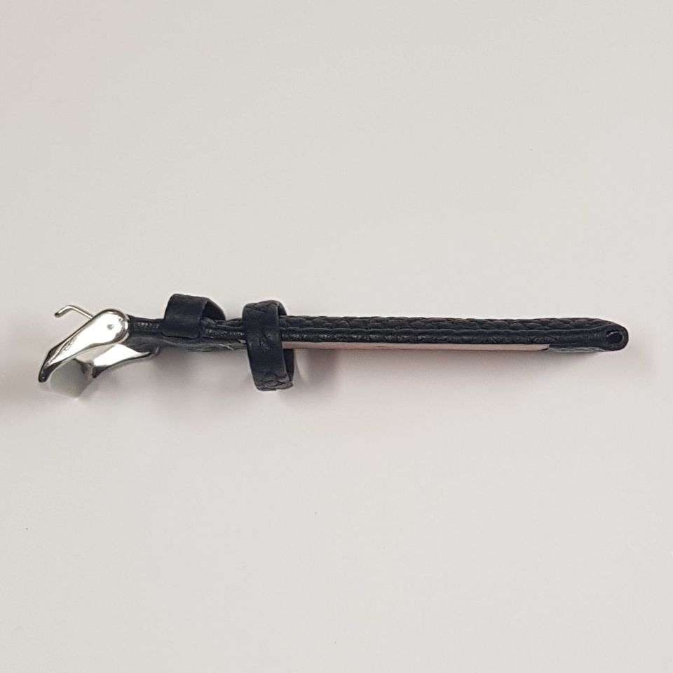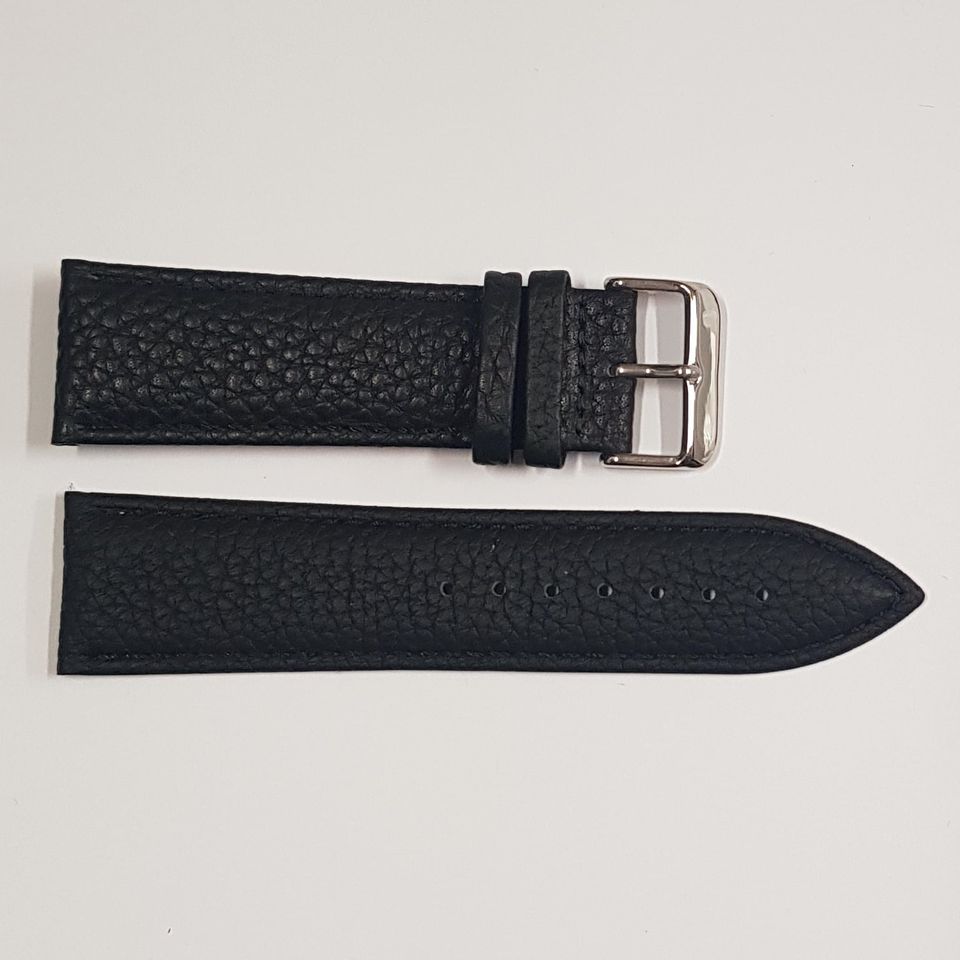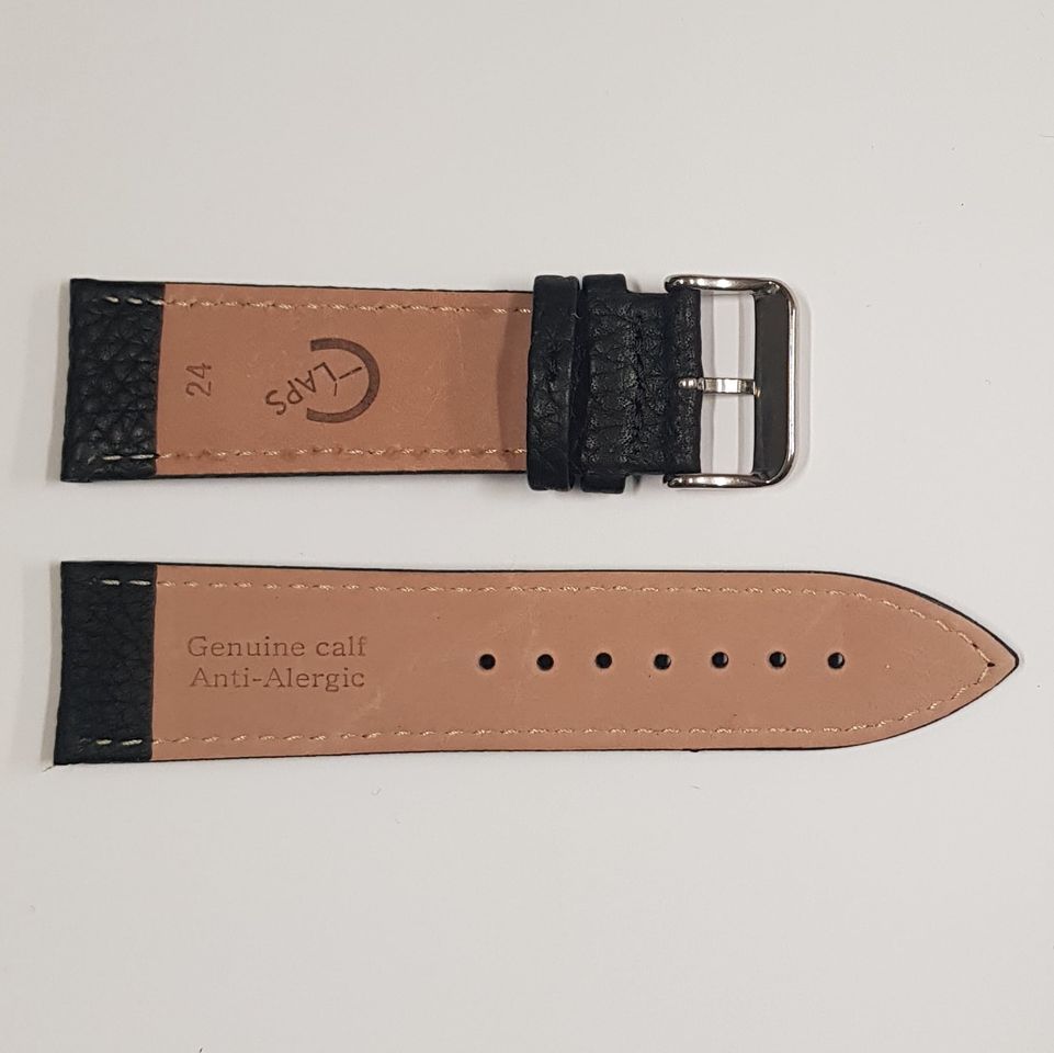 Bracelete em pele, na cor preta. Disponível nas medidas 22mm a 32mm.